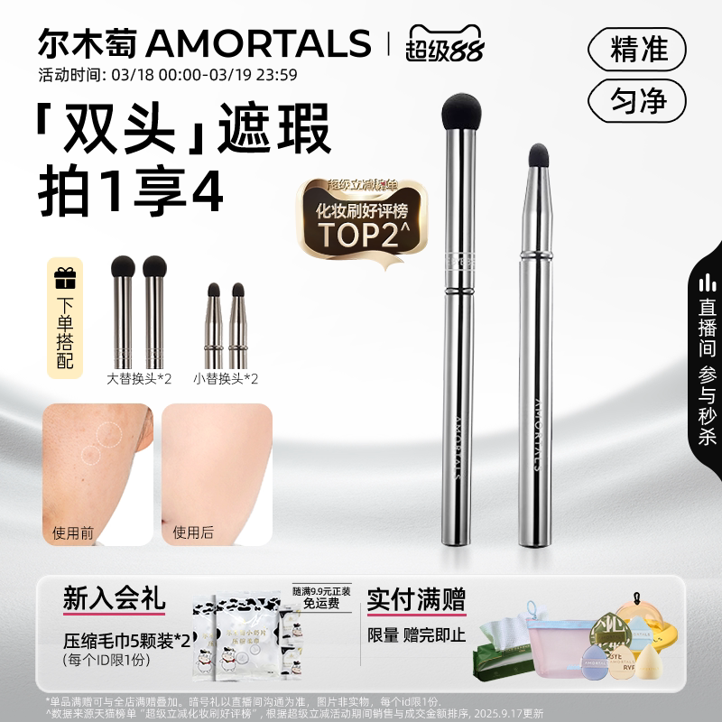 尔木萄双头无痕遮瑕刷泪沟指腹高光提亮眼影圆头蘑菇头晕染化妆刷