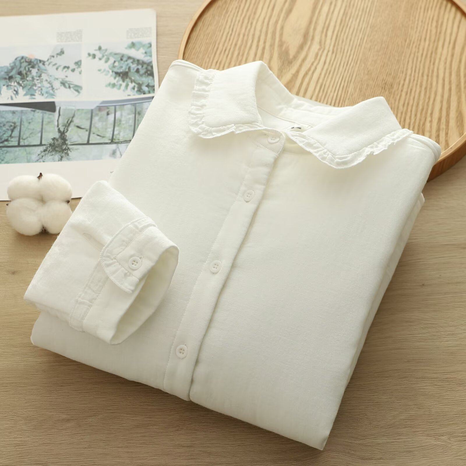 日系百搭白衬衫女宽松百搭洋气设计感森女文艺小清新上衣外套娃娃