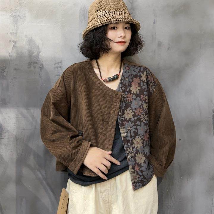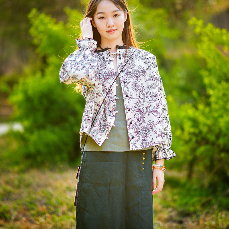 刺绣短外套春秋新品文艺复古撞色纯棉森女系宽松休闲圆领上衣外搭