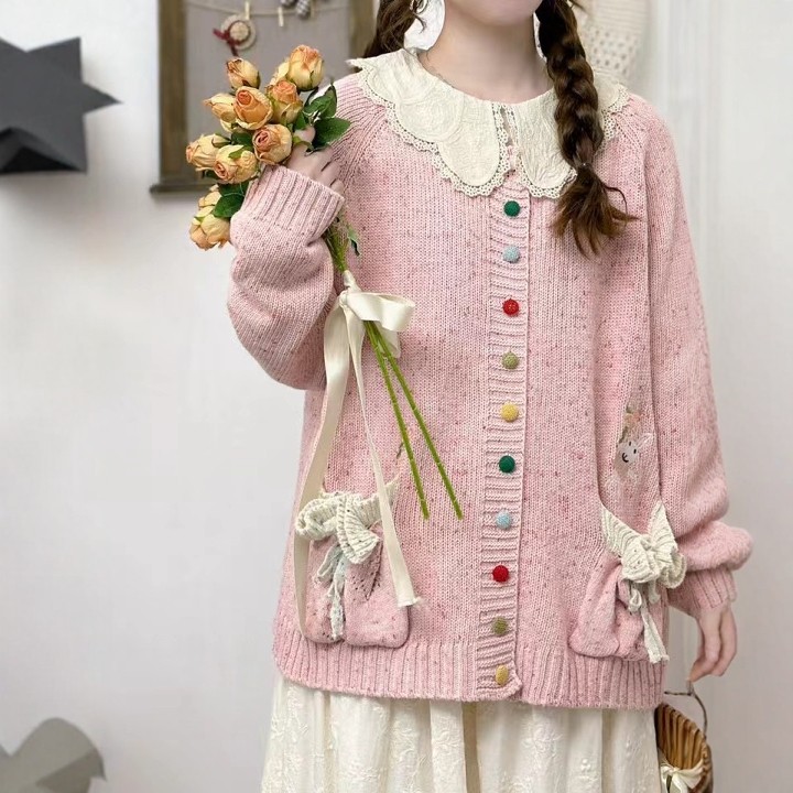 秋冬森女系甜美减龄彩色毛线扣针织毛衣外套福袋刺绣小兔开衫上衣