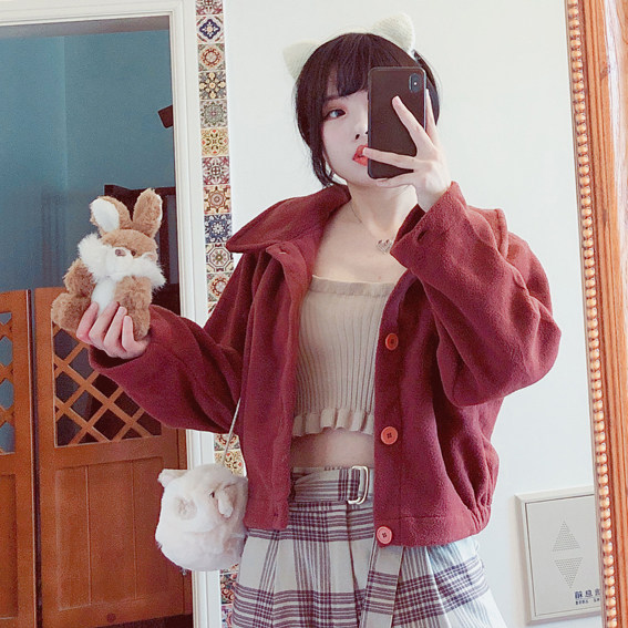 - 宽松短外套女学生
