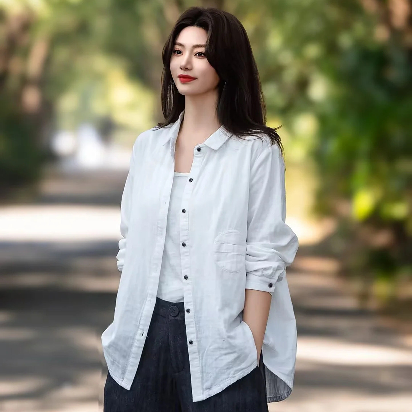 复古文艺范纯棉女式衬衫秋季长袖宽松外搭开衫麻料衬衣外套森女系