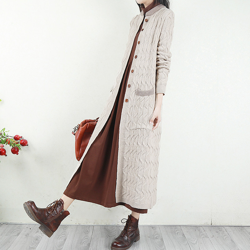 文艺范大毛衣外套秋季中长款立领显瘦针织开衫气质外搭宽松森女系