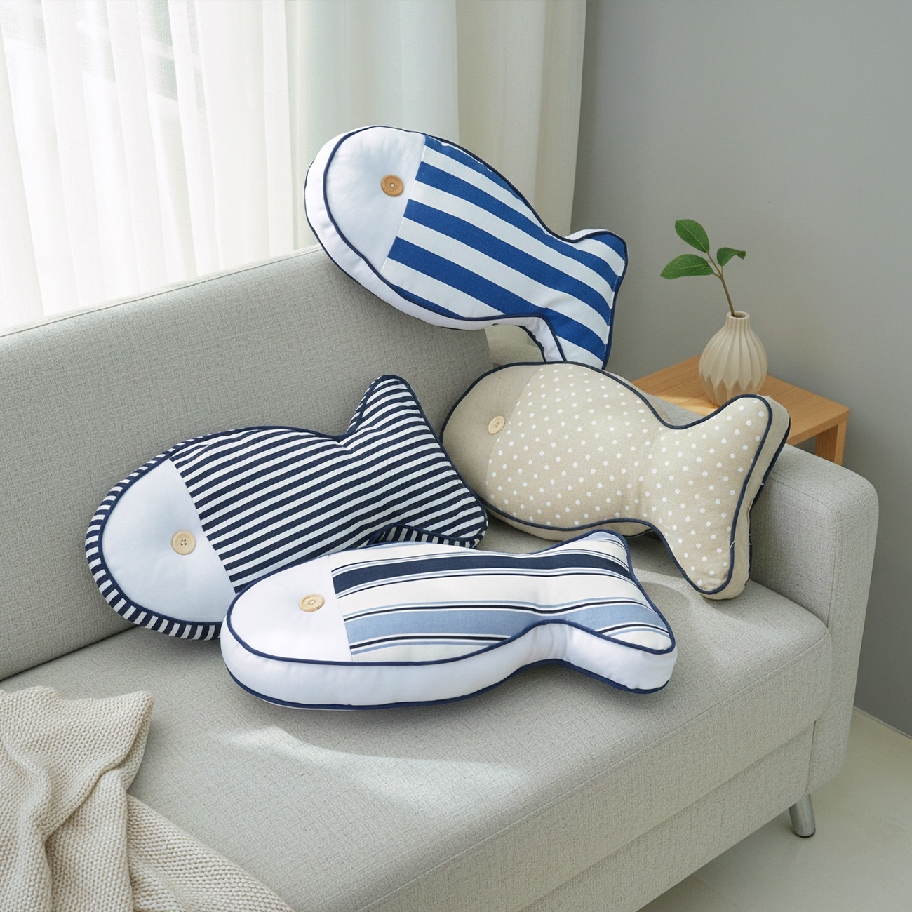 王曼昱同款地中海创意小鱼抱枕手工帆布家居布艺靠垫抱枕沙发靠枕