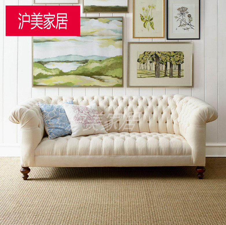 美式布艺沙发地中海北欧乡村田园风格整装小户型客厅美容院三人位
