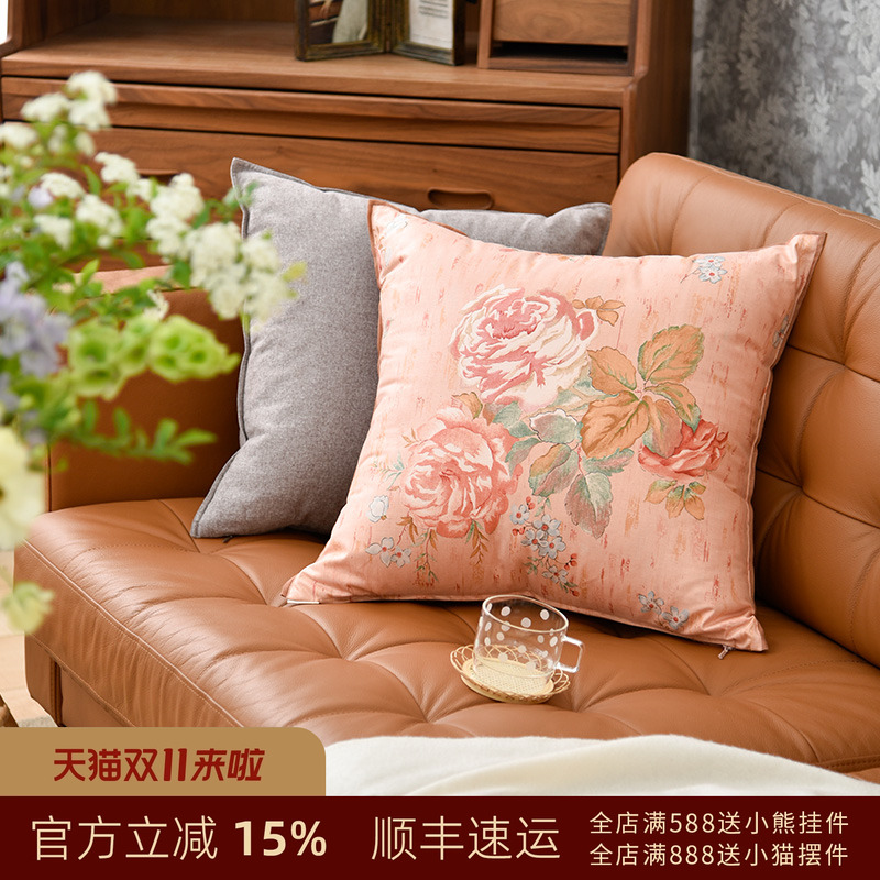 阳春小镇玫瑰抱枕客厅沙发腰垫靠枕双面腰枕可定制抱枕地中海风格