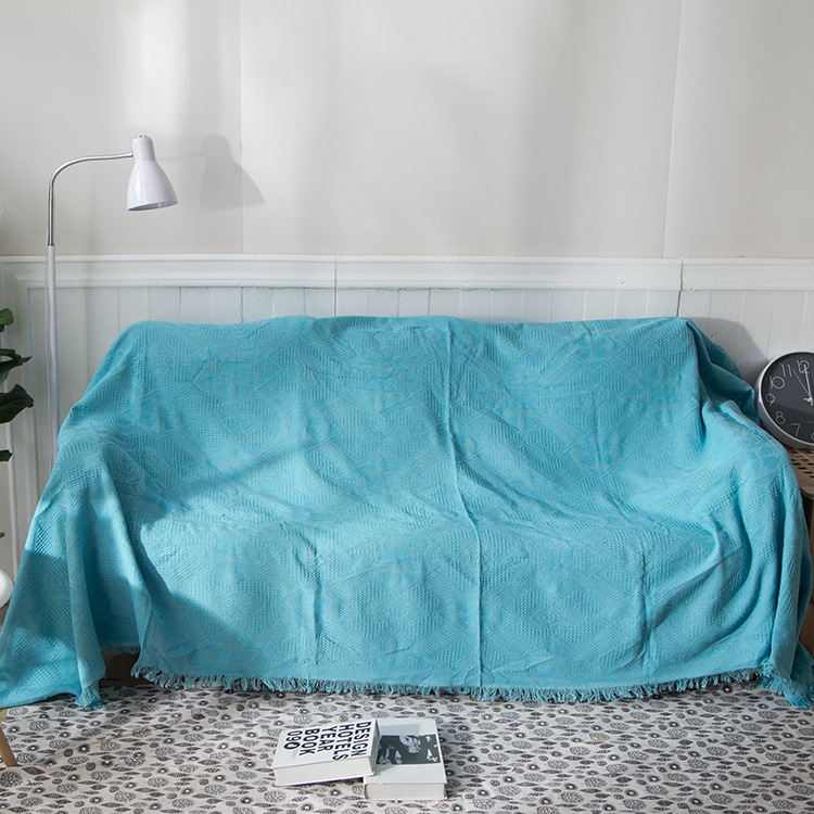 客厅沙发毯美式毯子线毯 卧室盖毯沙发罩沙发巾棉线地中海风全盖
