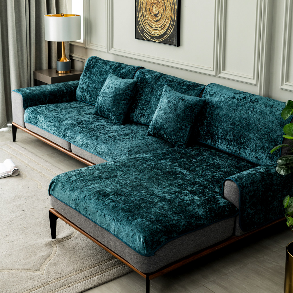 四季轻奢风地中海三米长的直排沙发垫巾套简约现代孔雀蓝蓝色定制