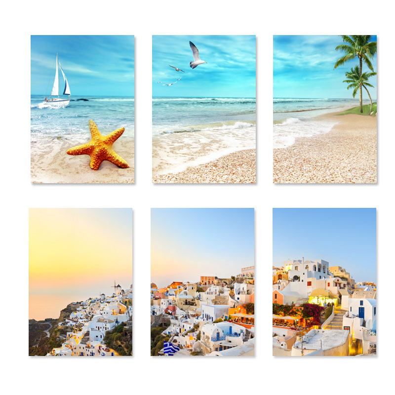 墙画客厅挂画现代简约三联无框大海组合地中海沙发背景墙壁装饰画
