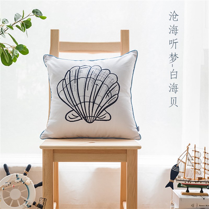 露之熙抱枕套不含芯刺绣蓝色靠枕简约现代海洋绣花地中海沙发靠垫
