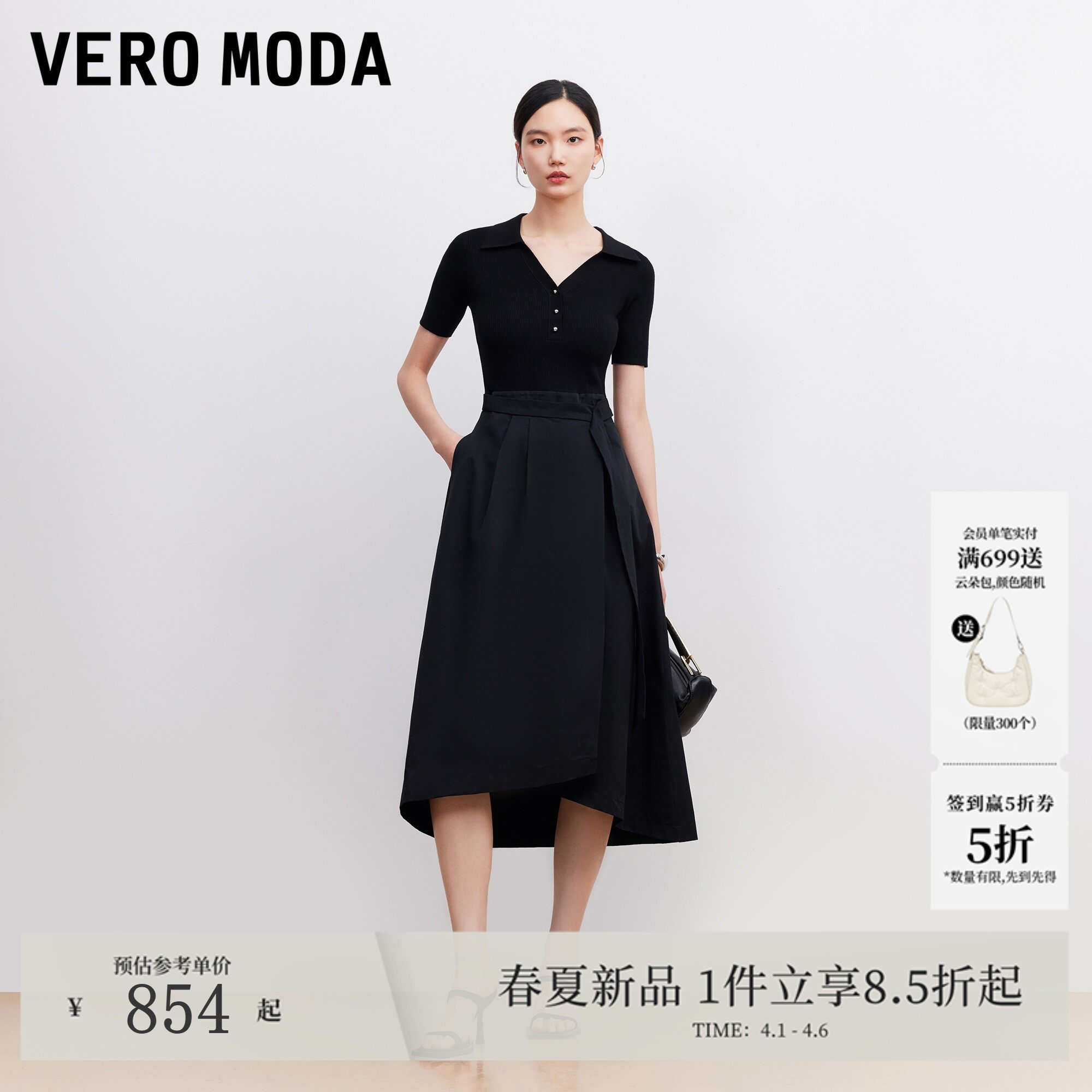Vero Moda连衣裙2026春季新款V领拼接裙摆系带A字长裙32617A018