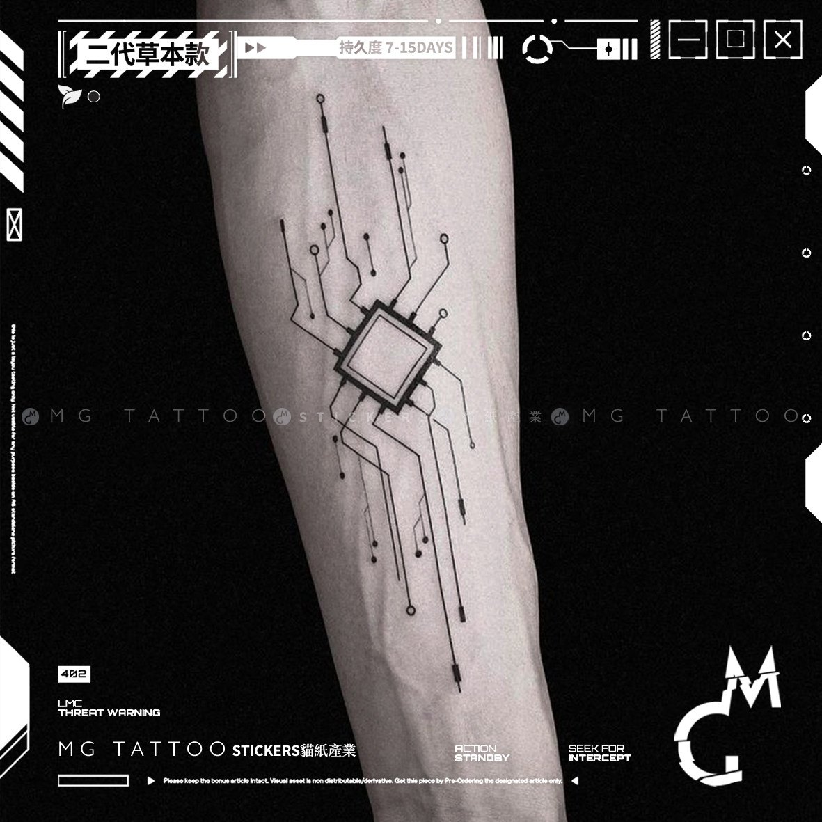 MG tattoo 草本纹身 赛博朋克人工智能电路板图案草本持久纹身贴