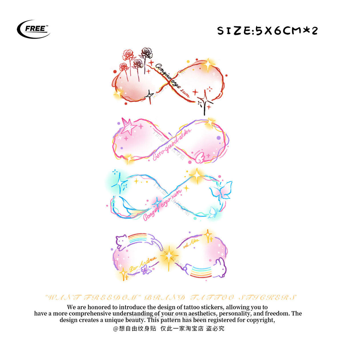 想自由 莫比乌斯环组合彩色彩绘遮盖遮瑕高级感防水持久纹身贴ins