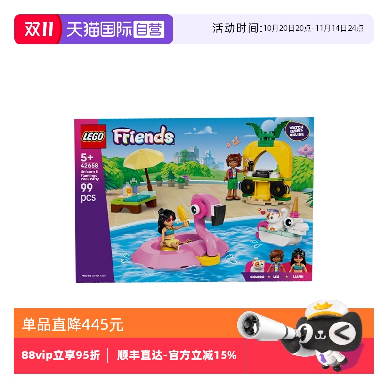 【自营】乐高好朋友42658独角兽和火烈乌泳池派对拼搭积木玩具