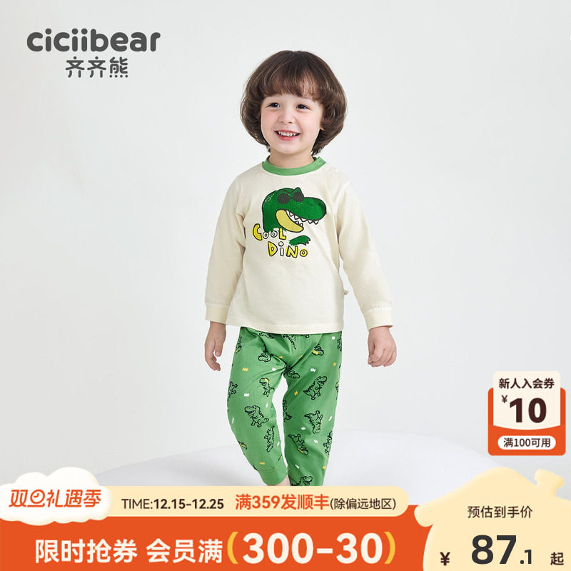 [5A抗菌]齐齐熊男童秋衣秋裤套装秋冬款宝宝纯棉内衣儿童恐龙睡衣