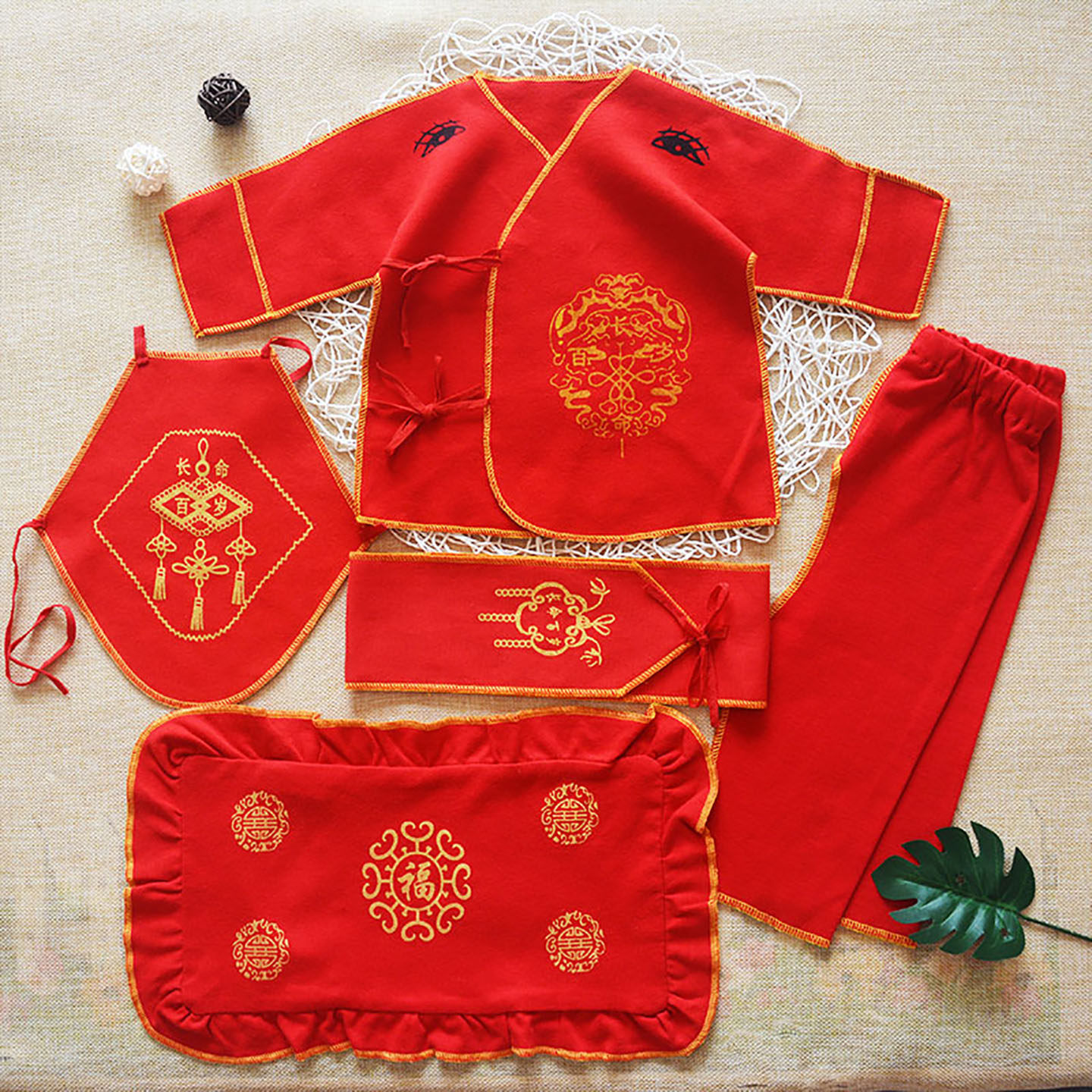 新生婴儿红色衣服宝宝纯棉内衣带眼睛和尚服长命百岁服四季不掉色