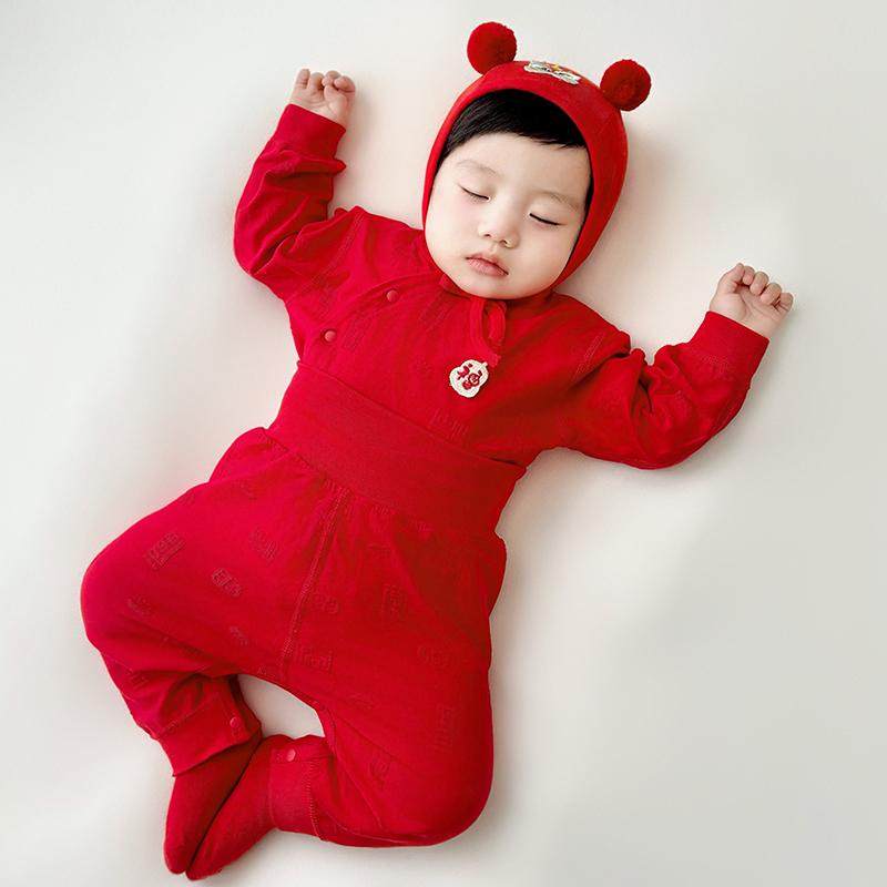 婴儿衣服秋冬分体套装宝宝纯棉内衣高腰护肚秋衣秋裤大红秋装纯棉