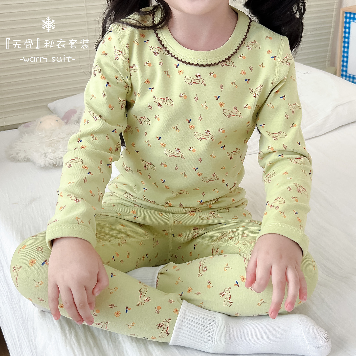 秋天儿童秋衣秋裤套装全棉a类花边女童孩睡衣宝宝纯棉内衣居家服