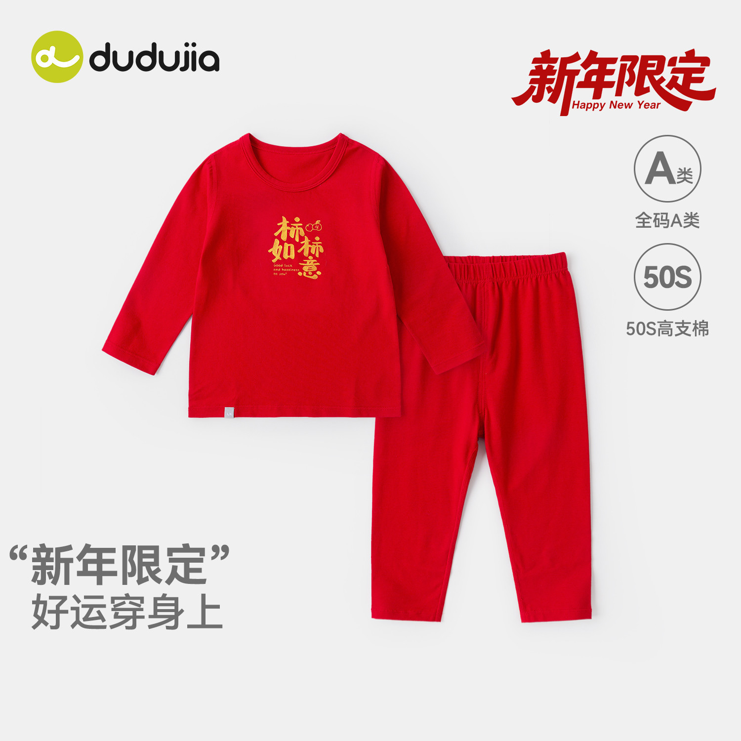 嘟嘟家宝宝纯棉内衣套装儿童秋衣秋裤童装女童衣服男童红色新年潮