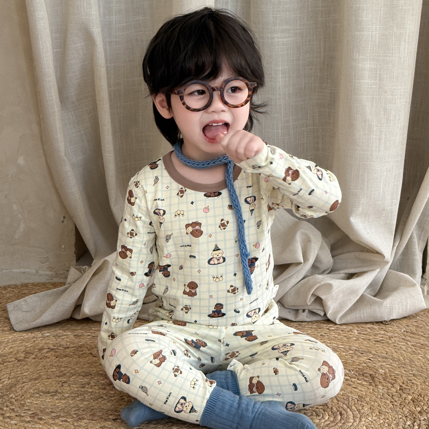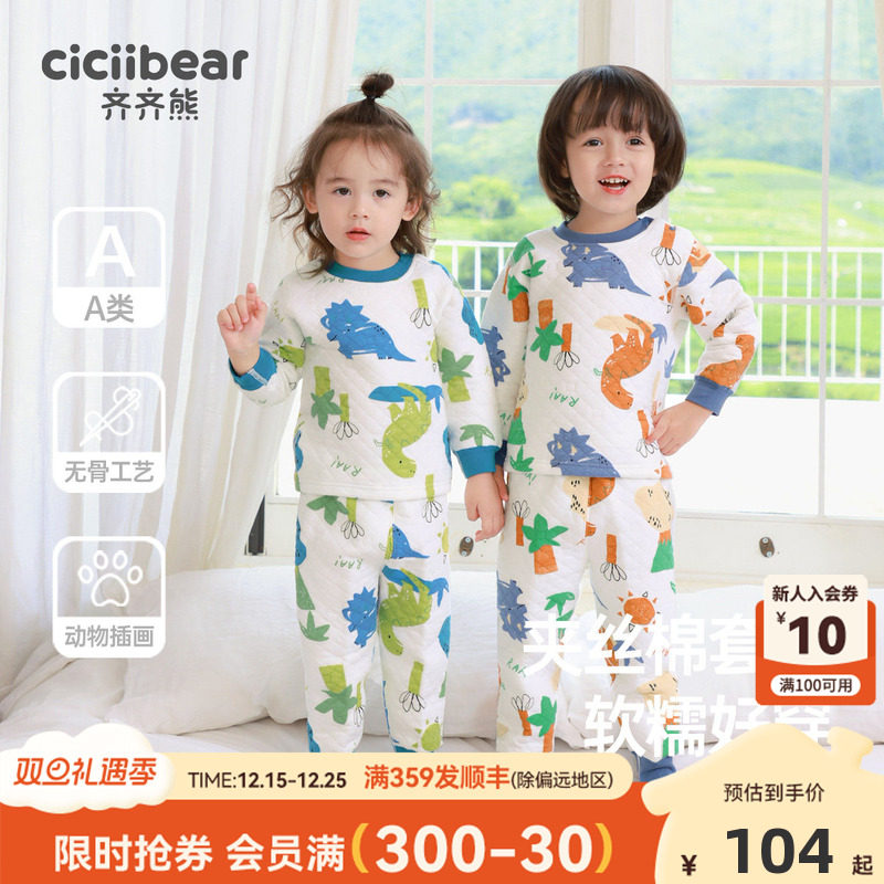 [夹棉]齐齐熊男童秋衣秋裤套装宝宝纯棉内衣两件套儿童睡衣打底衣