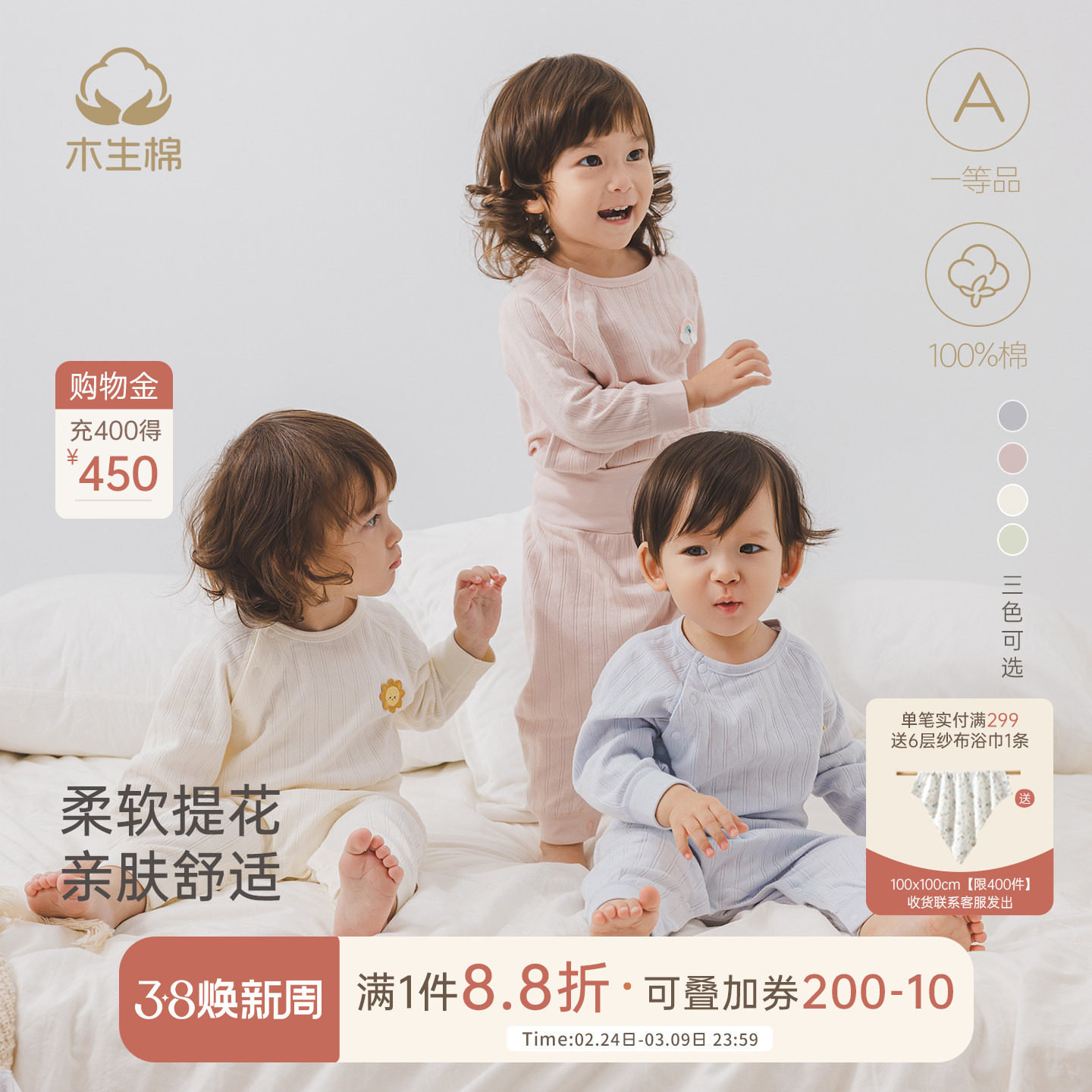 木生棉男女宝宝纯棉内衣套装春秋季婴幼儿秋衣秋裤长袖分体两件套