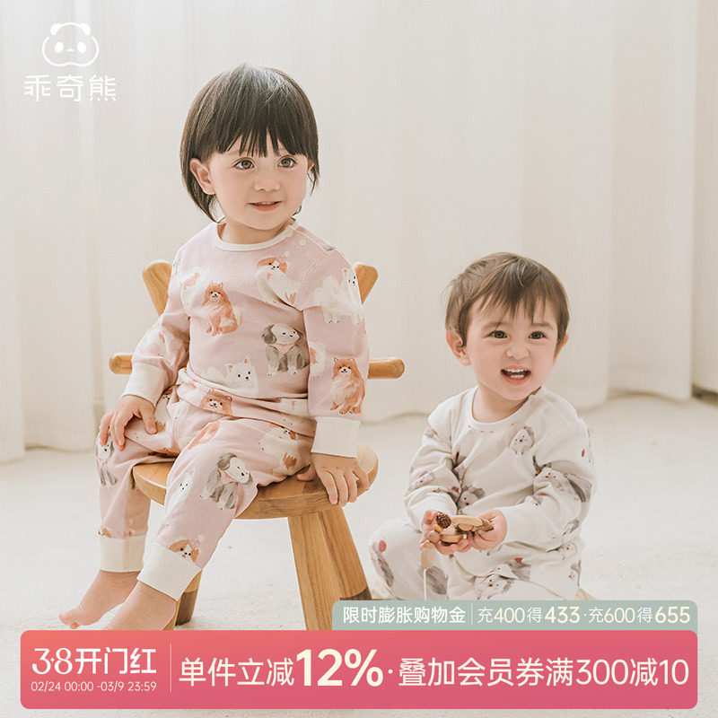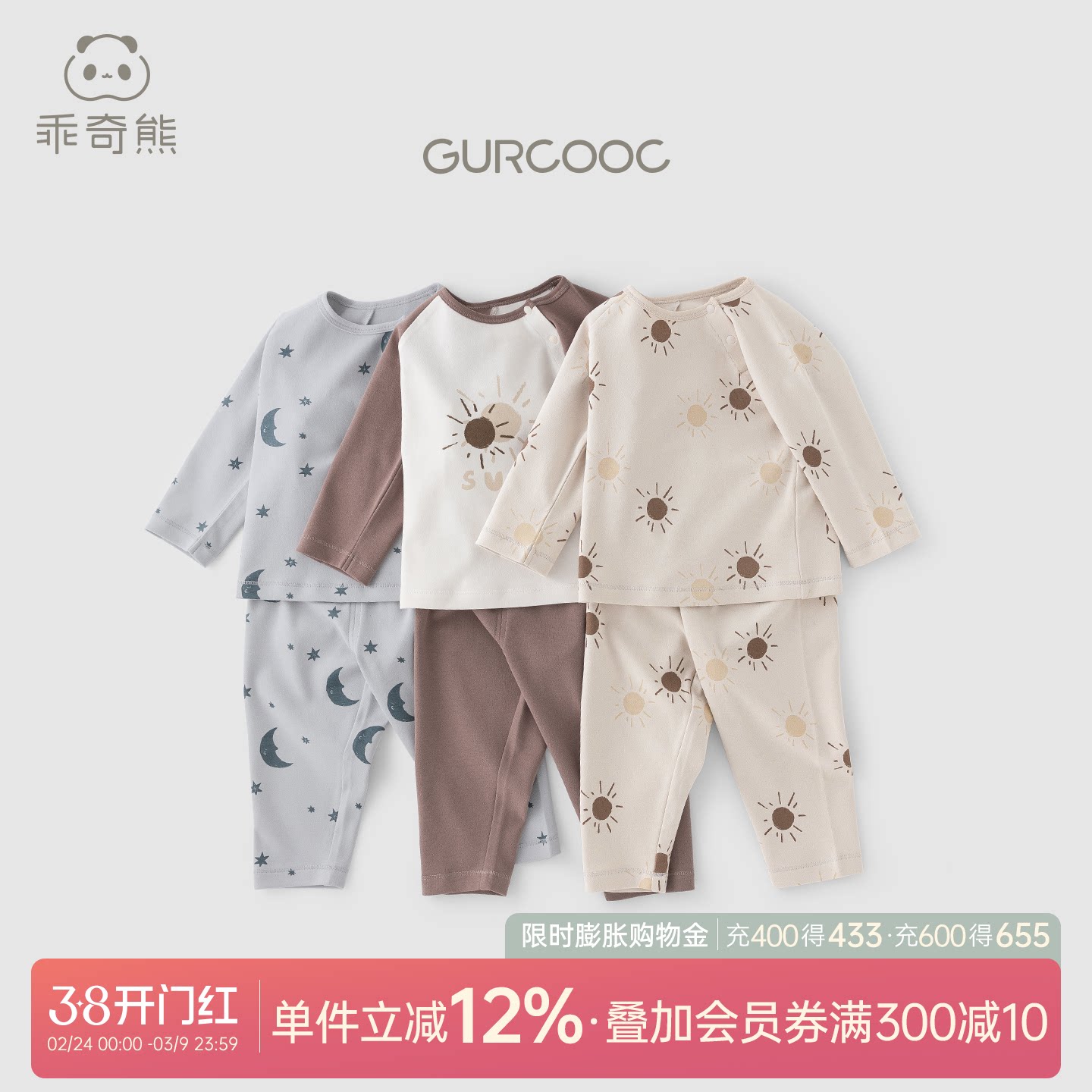 乖奇熊春秋季男女宝宝纯棉内衣保暖套装婴幼儿居家可爱分体两件套