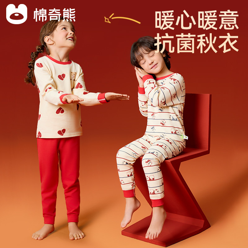 儿童秋衣秋裤秋冬男女孩新年红睡衣马宝宝纯棉内衣本命年保暖套装