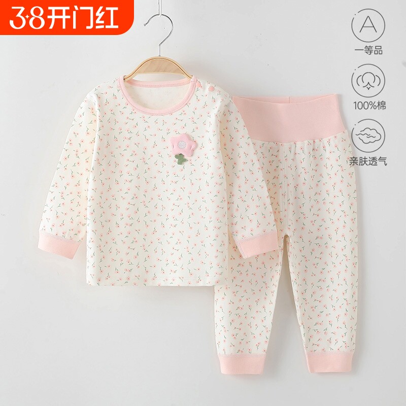 女宝宝纯棉内衣套装儿童高腰护肚保暖秋裤婴儿男童秋衣0-5岁外穿