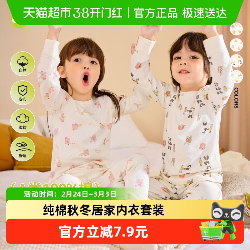 巴拉巴拉儿童内衣套装春秋薄男童秋衣秋裤女童宝宝打底衫睡衣纯棉