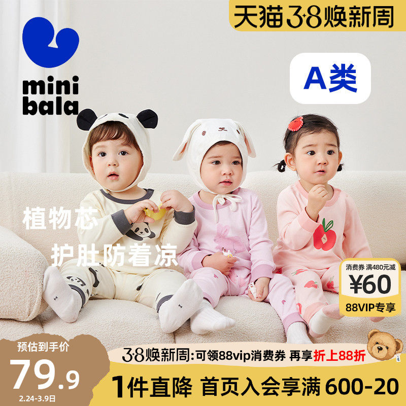 迷你巴拉巴拉儿童秋衣秋裤2026春秋装宝宝纯棉内衣男女童睡衣套装