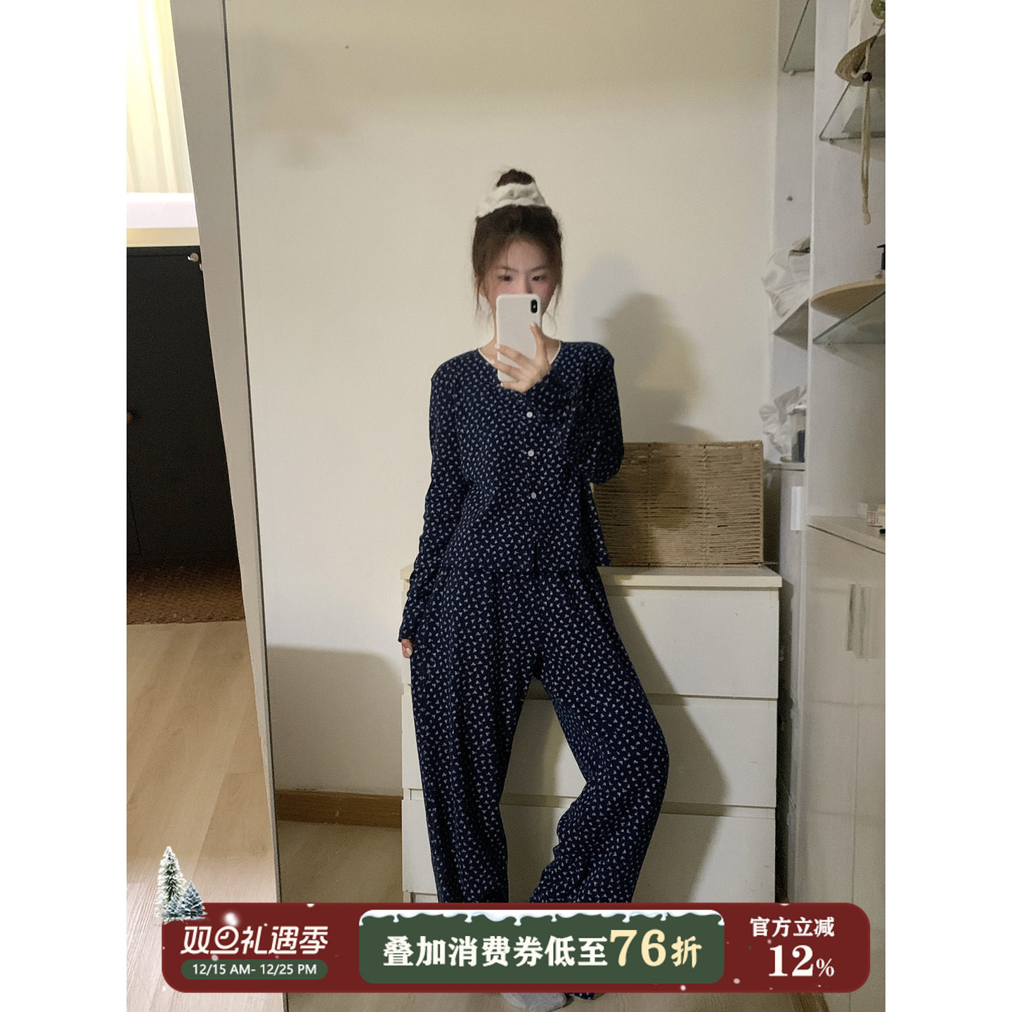 JoyceBra 田园风碎花长袖睡衣女秋季新款圆领开衫舒适家居服套装
