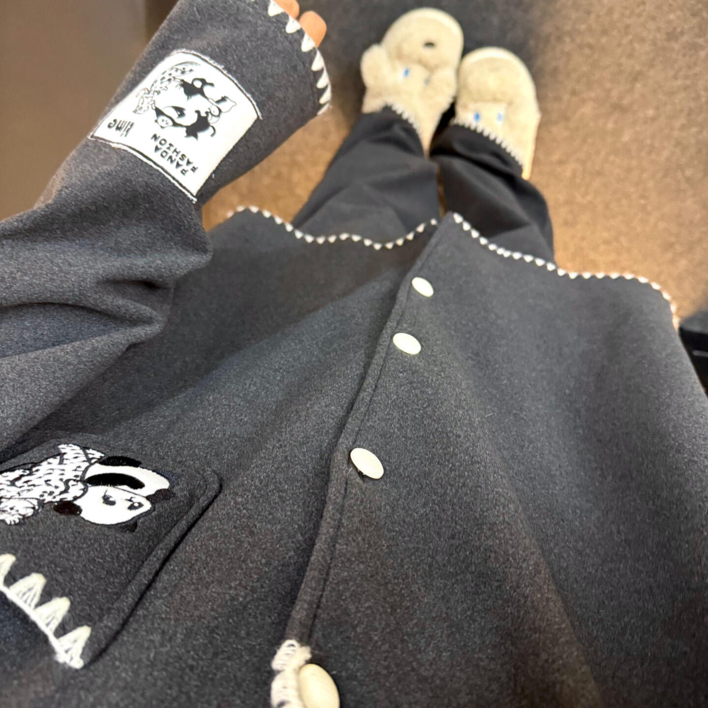 侘町2025新款熊猫刺绣德绒长袖睡衣女春秋季可外穿加厚秋冬家居服
