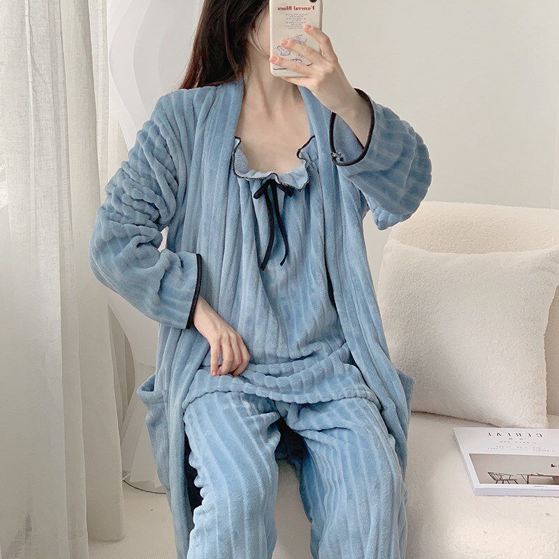 秋冬季加厚加绒女三件套可外穿酒店旅游浴袍睡袍长袖睡衣女家居服
