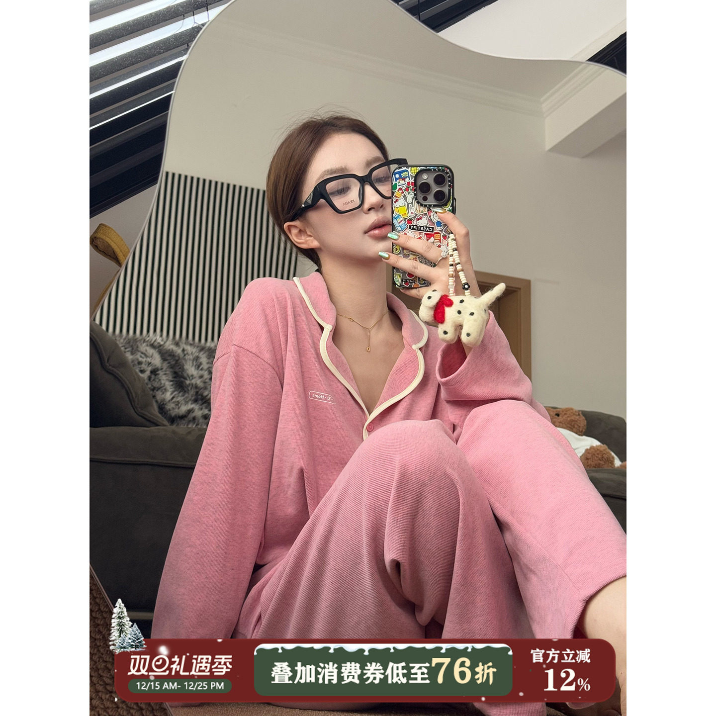 JoyceBra 撞色翻领长袖睡衣女秋季新款宽松舒适慵懒风家居服套装