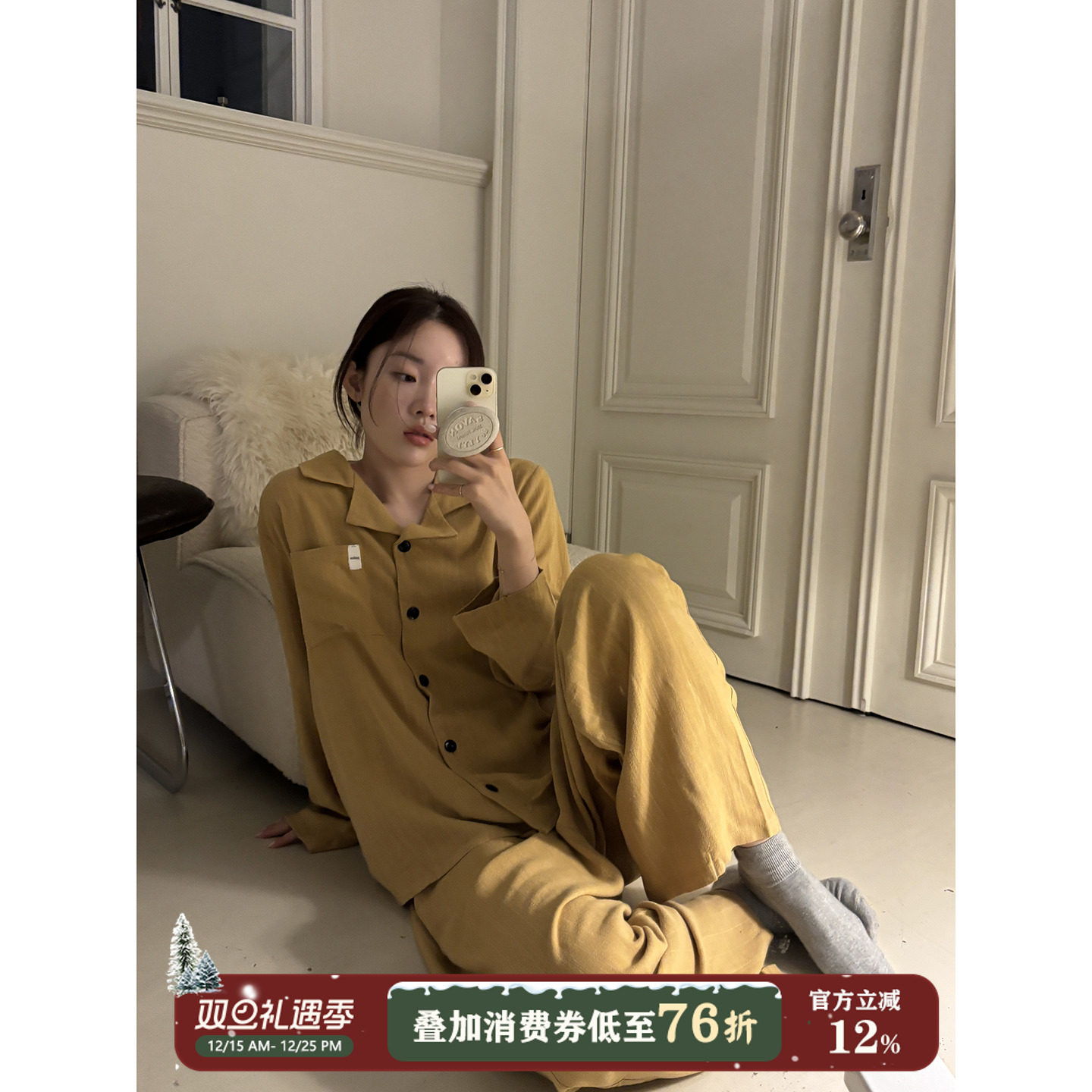JoyceBra 慵懒风翻领长袖睡衣女秋季新款休闲宽松外穿家居服套装