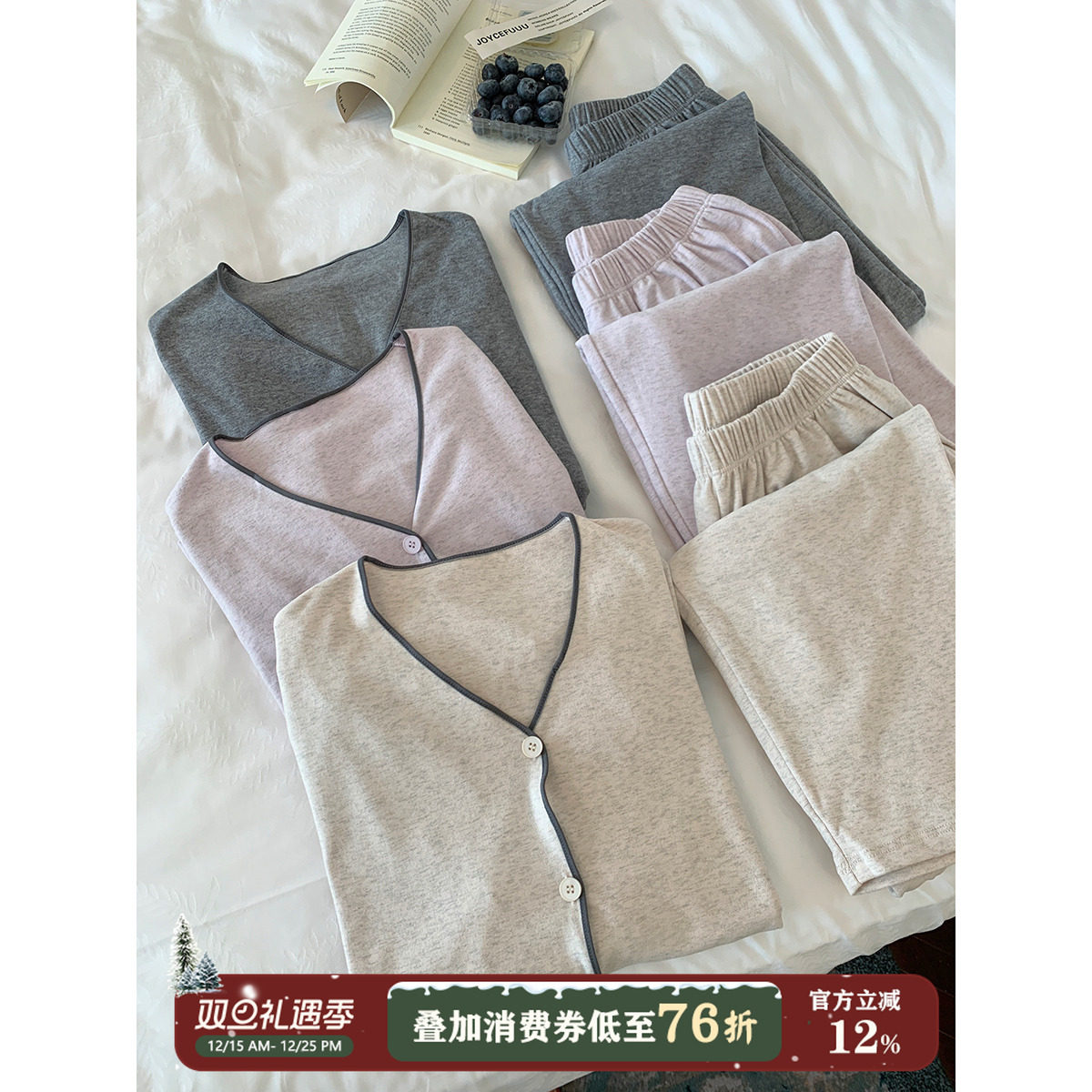 JoyceBra V领长袖睡衣女2025秋季新款舒适亲肤双面磨毛家居服套装