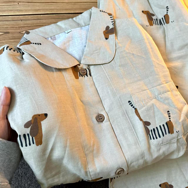 侘町2025年新款复古腊肠狗纯棉长袖睡衣女春秋季可外穿家居服秋款