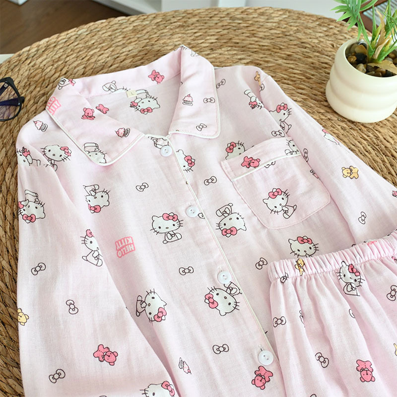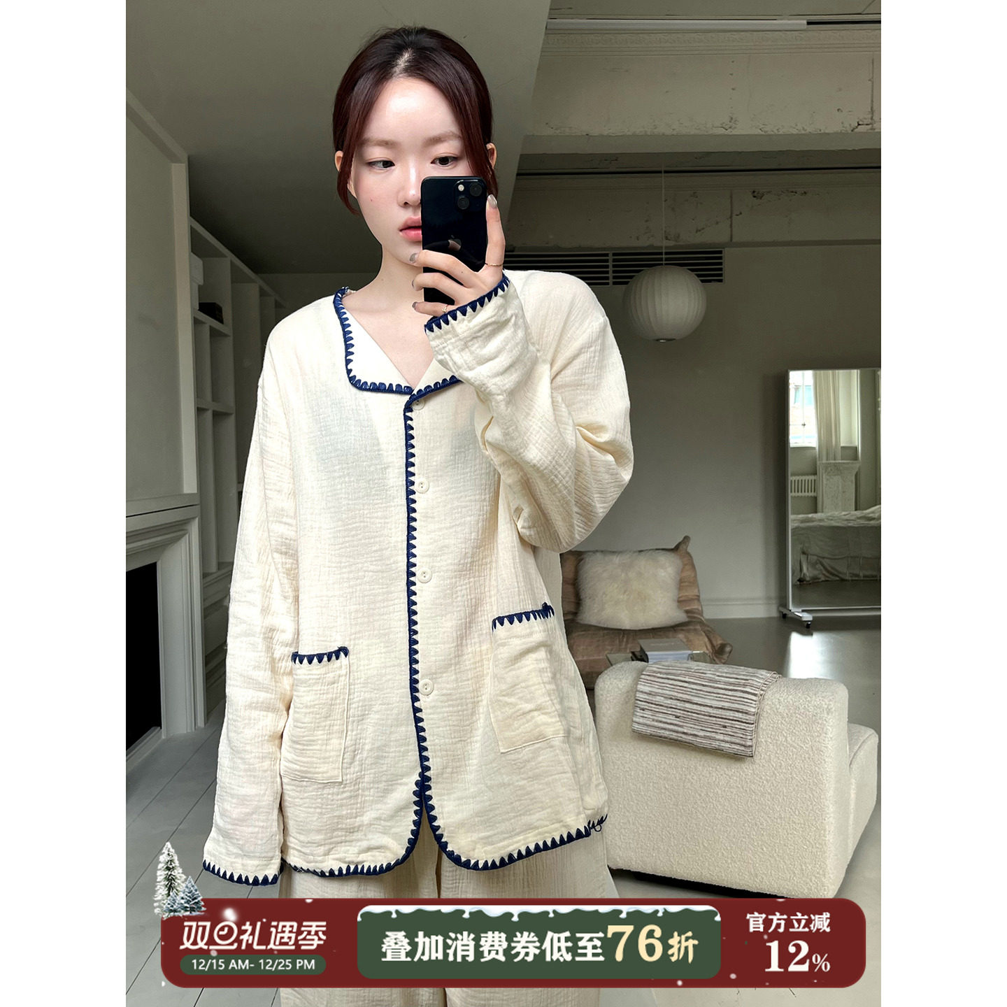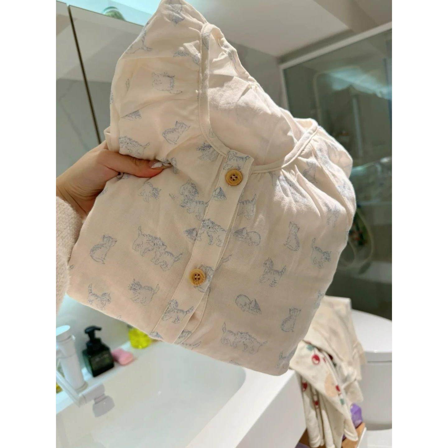 A类全棉纯棉婴儿双层纱布 长袖睡衣女2025春夏秋季新款棉麻家居服