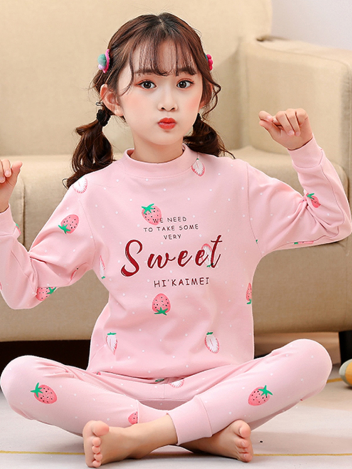 儿童保暖内衣套装中领纯棉秋衣秋裤女孩春秋长袖睡衣女童家居服..