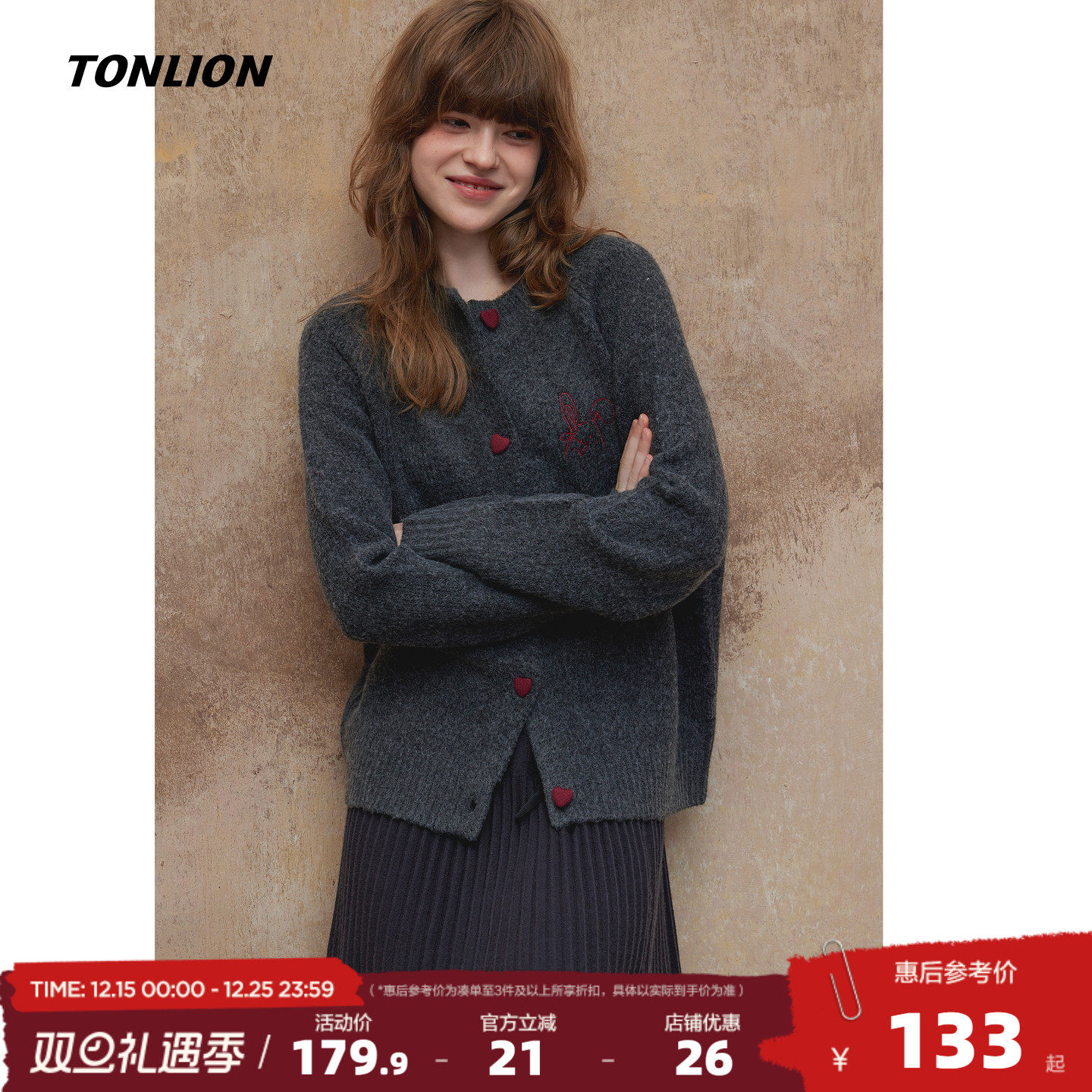 唐狮2025秋冬毛衣慵懒风针织开衫外套女撞色爱心复古毛衣外套
