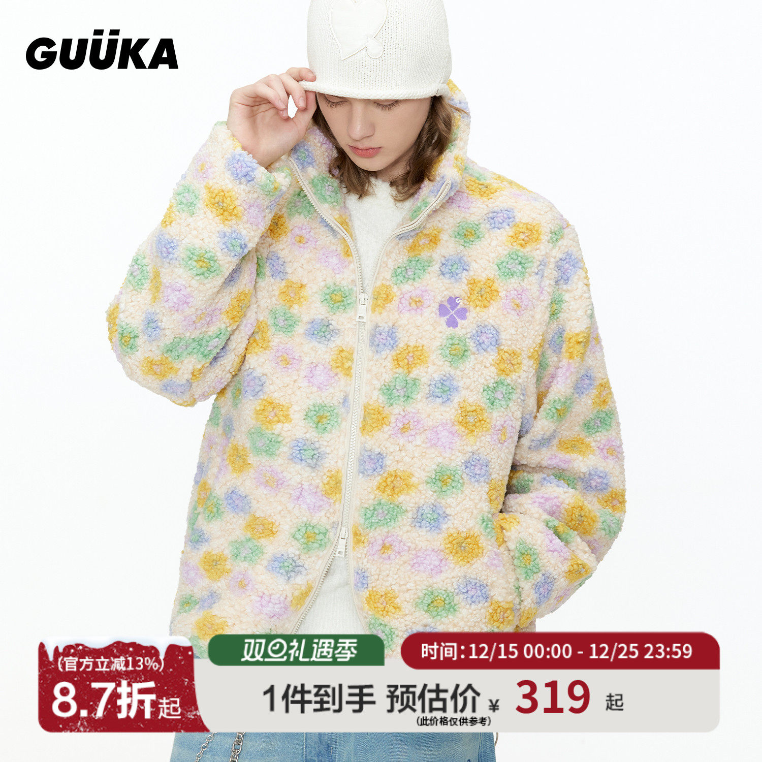 陈浚铭同款GUUKA潮牌爱心刺绣摇粒绒外套男 冬季加厚立领保暖夹克