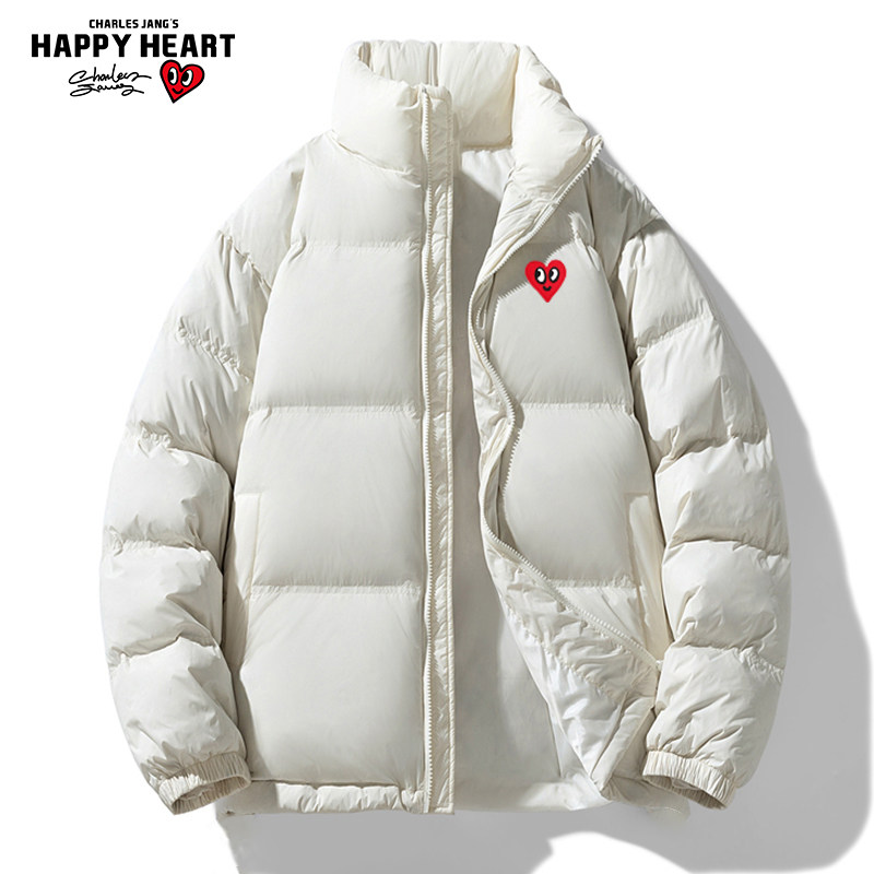 查尔斯桃心纯色基础款爱心羽绒服男2025冬季短款保暖立领情侣外套