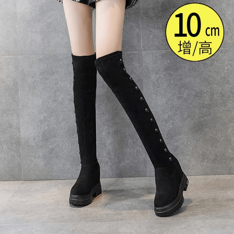 过膝长靴女10cm内增高小个子厚底高筒瘦腿靴子高跟长筒瘦瘦弹力靴