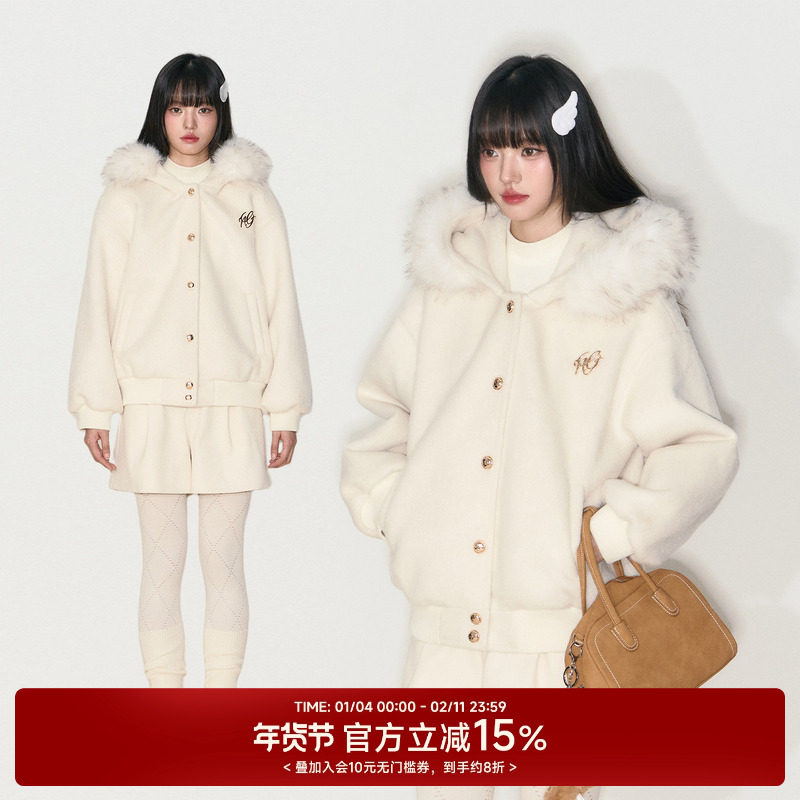 - 女毛呢带帽外套