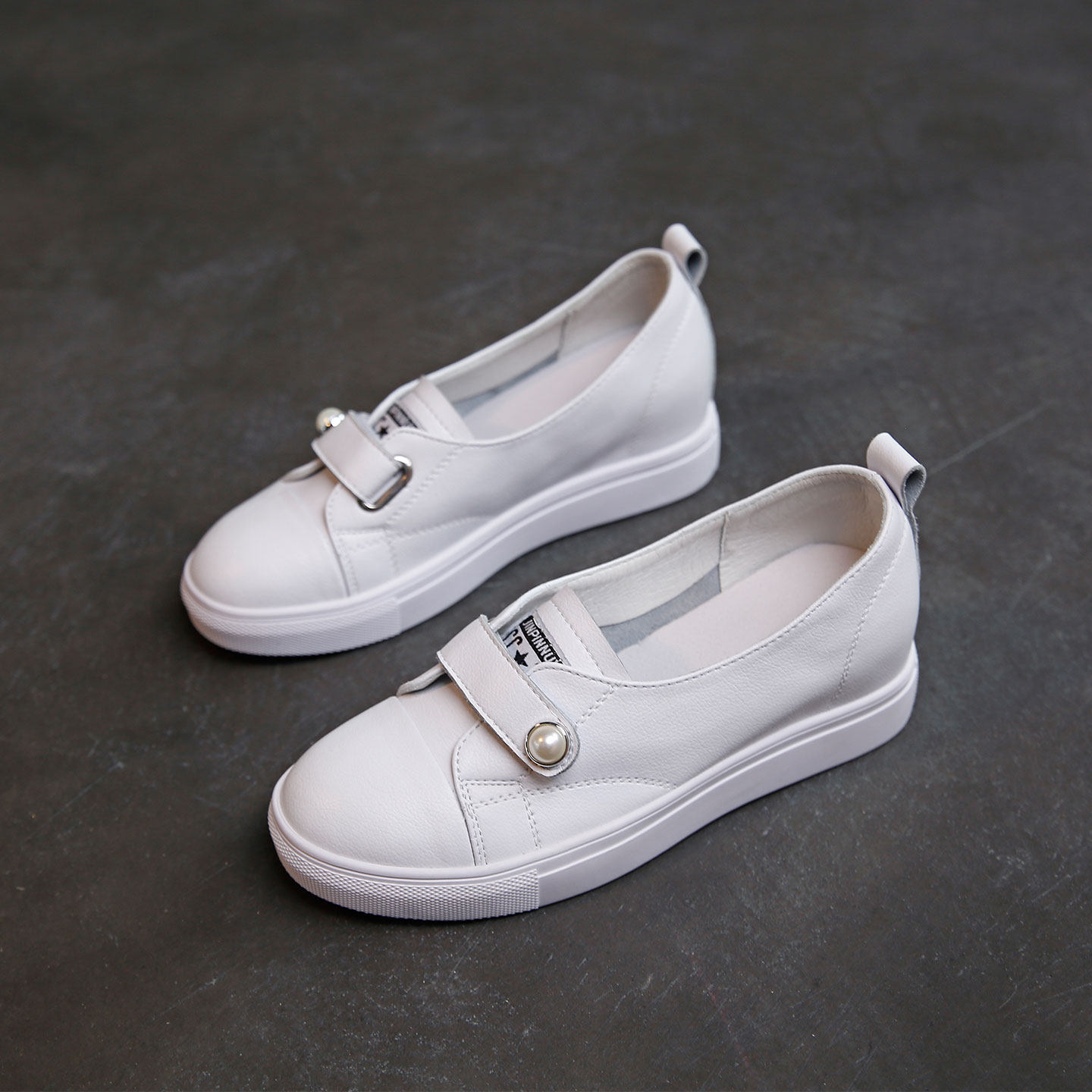 RubyL/2cm软底内增高单鞋简约百搭圆头魔术贴休闲运动底小皮鞋女