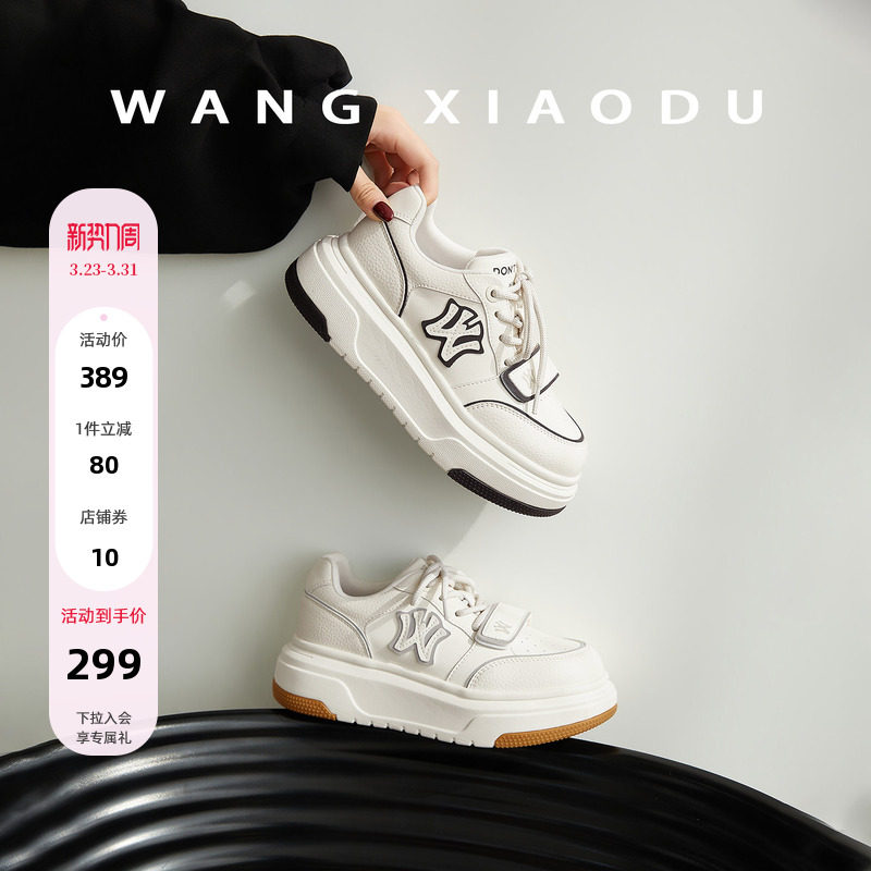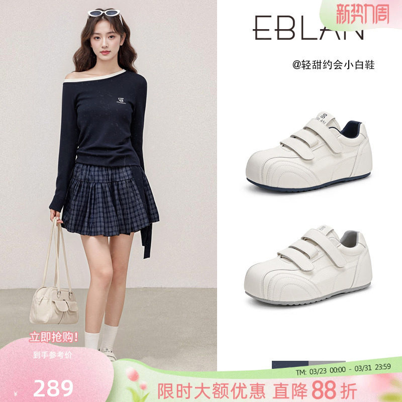 EBLAN/伊伴内增高小白鞋女2026春季新款魔术贴厚底休闲面包德训鞋