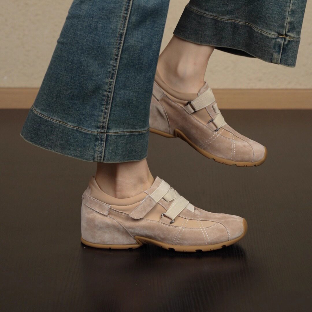 真皮版~芭蕾风魔术贴德训鞋女2025新款真皮玛丽珍鞋内增高休闲鞋
