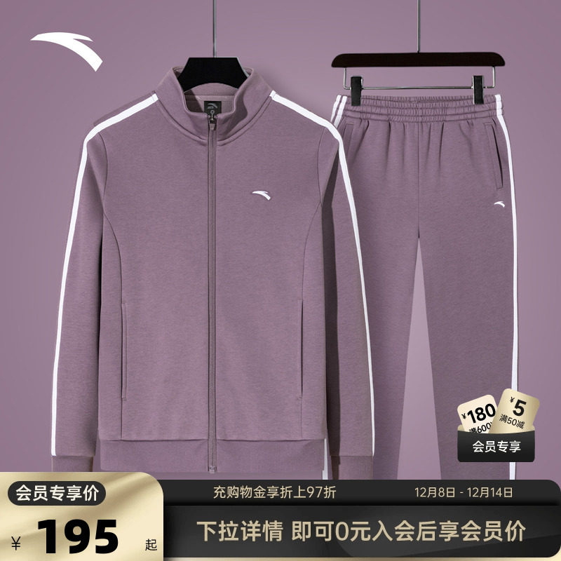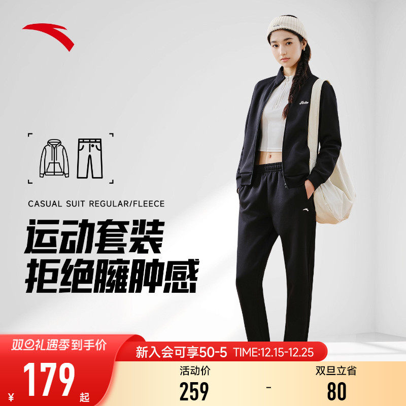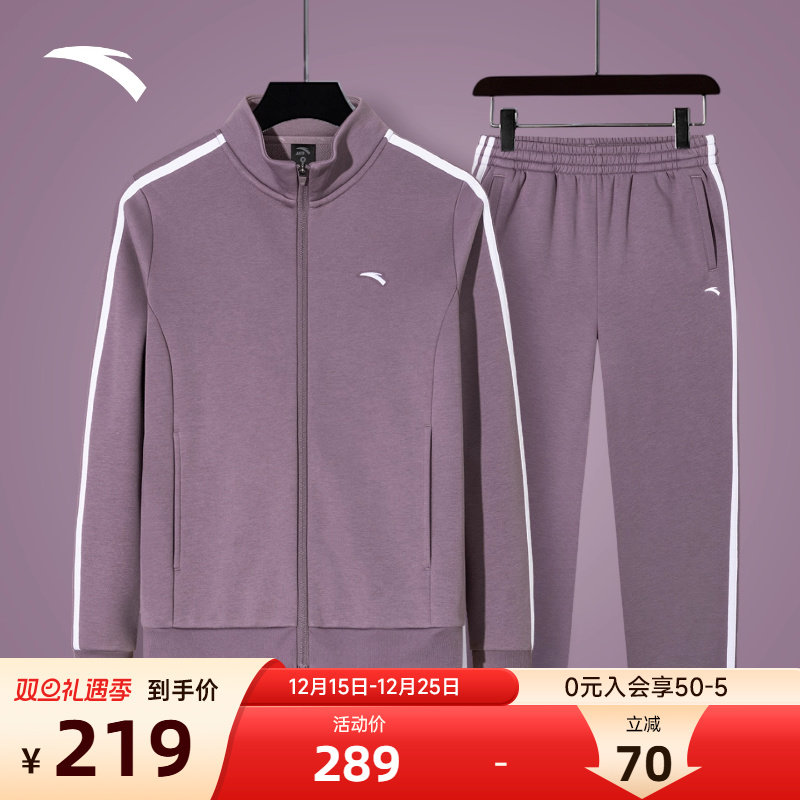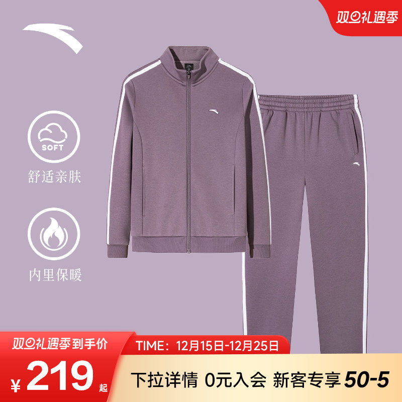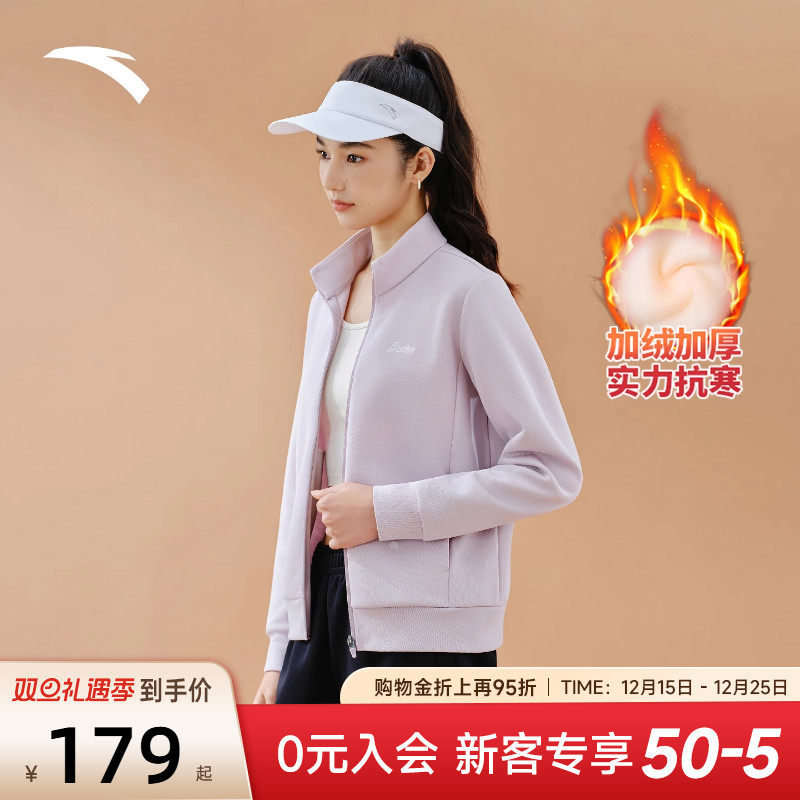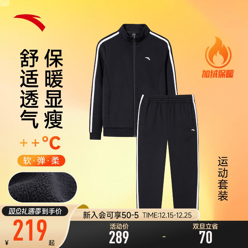 安踏运动套装女2025新款冬季休闲立领长袖外套长裤加绒保暖两件套