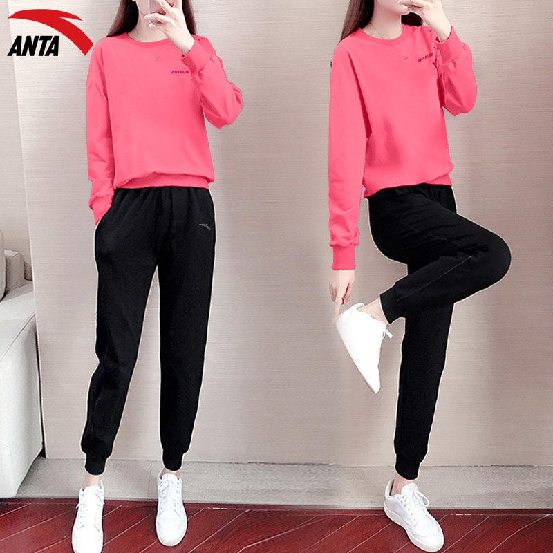 安踏运动套装女春秋季时尚百搭宽松休闲健身房跑步卫衣长裤两件套