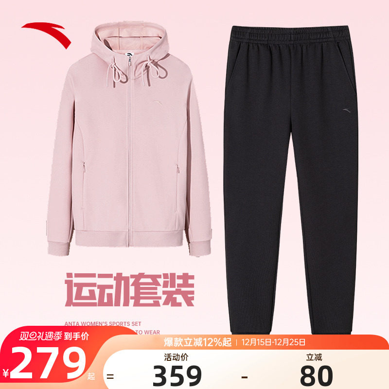 安踏运动套装女款2025新款秋冬连帽外套长裤两件套加绒保暖女装
